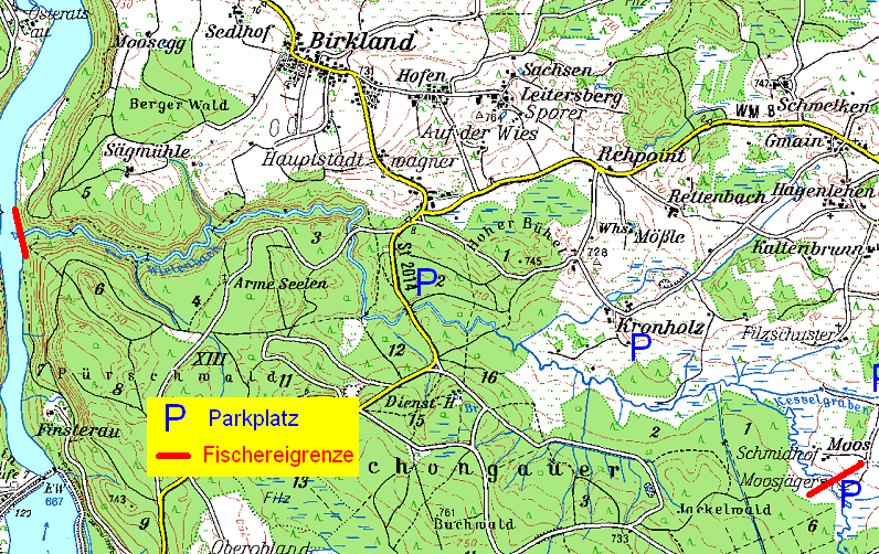 Oberlauf: Fischereirecht des Staatsforstes, unbewirtschaftet; seit 2010 Hege durch KFV
