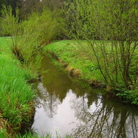Wiesenbach, teilweise in Feuchtflächen. Streckenweise mäandrierend. Überwiegend kiesige Sohle, strömungsbetont.