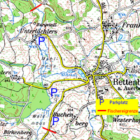 nur Kunstköder (Fliege, Spinner); Sonderbestimmung: vom Anfischen bis 30. Juni ist die Fliegenfischerei bis zu 3mal in der Woche erlaubt (ansonsten 2mal). Ab 1. Oktober ist nur noch die Fliegenfischerei erlaubt.