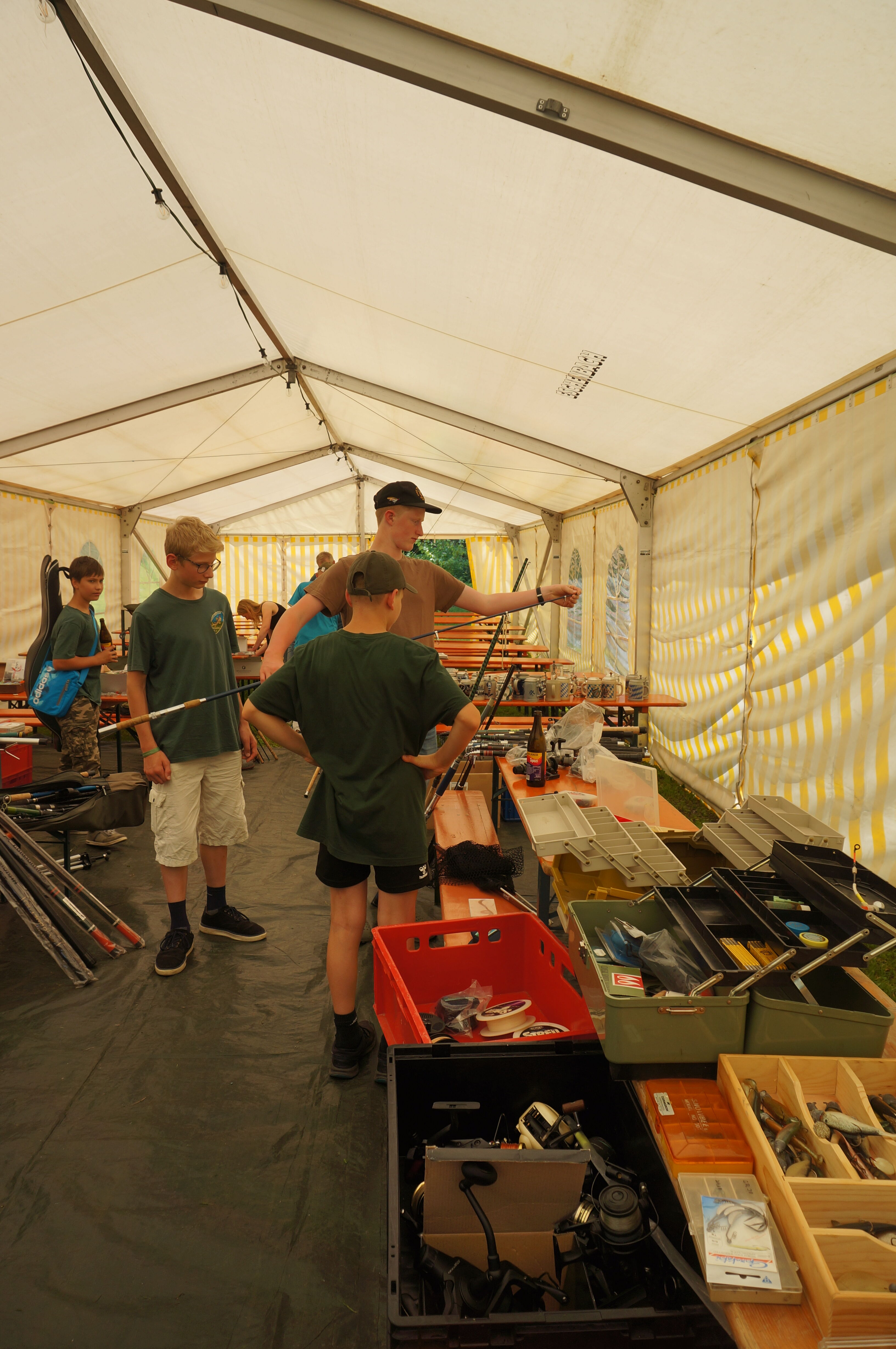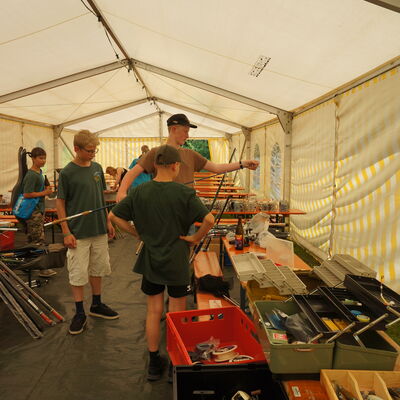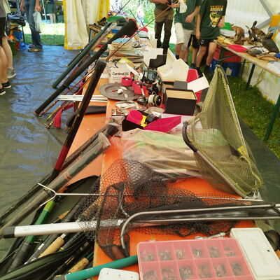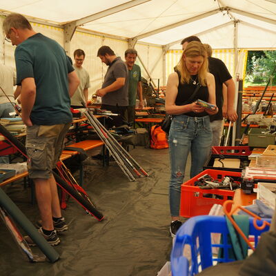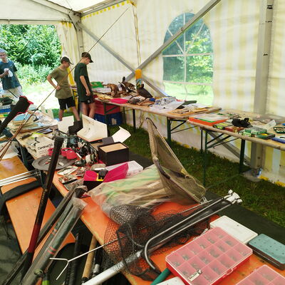 Ruten, Rollen, Spinner und Blinker, Wobbler aller Art und Gummifische: alles wurde zu super Flohmarkt Preisen angeboten und verkauft.